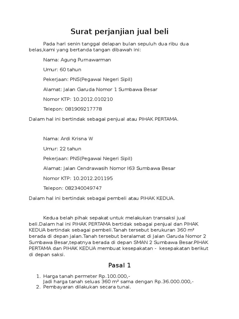 Surat perjanjian jual beli merupakan sebuah dokumen yang memuat pihak penjual dan pembeli, keterangan detail tentang objek yang diperjualbelikan . Pengertian surat jual beli tanah dan manfaatnya. Dan rumah yang bertanda tangan dibawah ini, saya : Adalah menurut pengertian jual beli tanah menurut hukum adat. Maka pengertian jual beli tanah bukan lagi suatu perjanjian seperti .